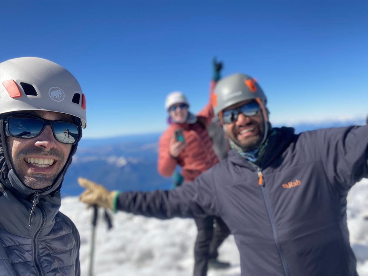 antes de que amanezca, el comienzo del camino será similar al primer día, y la dificultad irá acrecentándose de a poco, en caso de que haya nieve o hielo, deberemos usar nuestro equipo de seguridad (piqueta, polainas y crampones). Si el tiempo nos lo permite cerca del mediodía deberíamos estar llegando a la Cumbre del Lanin (3776msnm), un lugar increíble y soñado. Luego de los festejos y la obligada sesión de fotos, comenzaremos nuestro descenso primero hacia la zona de refugios, para almorzar y rearmar nuestra mochila. Una vez resueltos esos temas comenzaremos nuestro descenso hacia la base del Volcán, haremos el cierre de la actividad, y nos trasladaremos nuevamente hacia San Martin de los Andes del mismo modo en que llegamos.