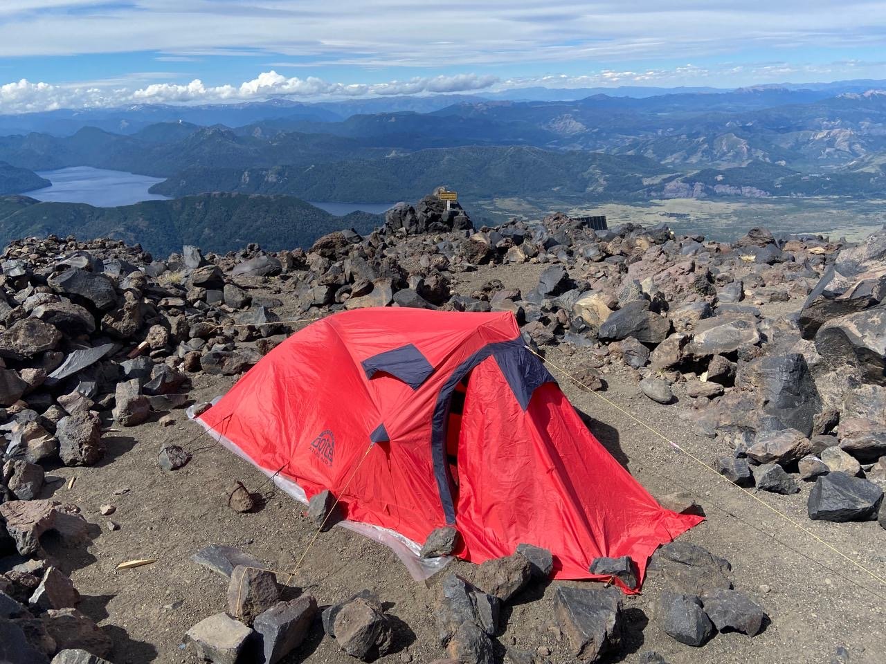 Nos juntaremos con todo el grupo en San Martin de los Andes, para trasladarnos en bloque hasta el Puesto de Guarda parques Seccional Río Turbio, muy cerca del paso internacional Mamuil Malal, una vez hechos los tramites de habilitación en el Parque Nacional, comenzaremos nuestro trekking por una zona de bosques autóctonos, para luego comenzar nuestro ascenso por la mítica espina de pescado, pasado ese sector del volcán, comenzaremos a faldearlo siempre ganando altura, almorzaremos en el camino, aprovechando la impresionante vista que ya nos regala en ese momento el ascenso, para luego de una hora más llegar al sector de carpas, en donde merendaremos junto a la charla de manejo de equipo técnico, cenaremos temprano, y optaremos por acostarnos a dormir lo